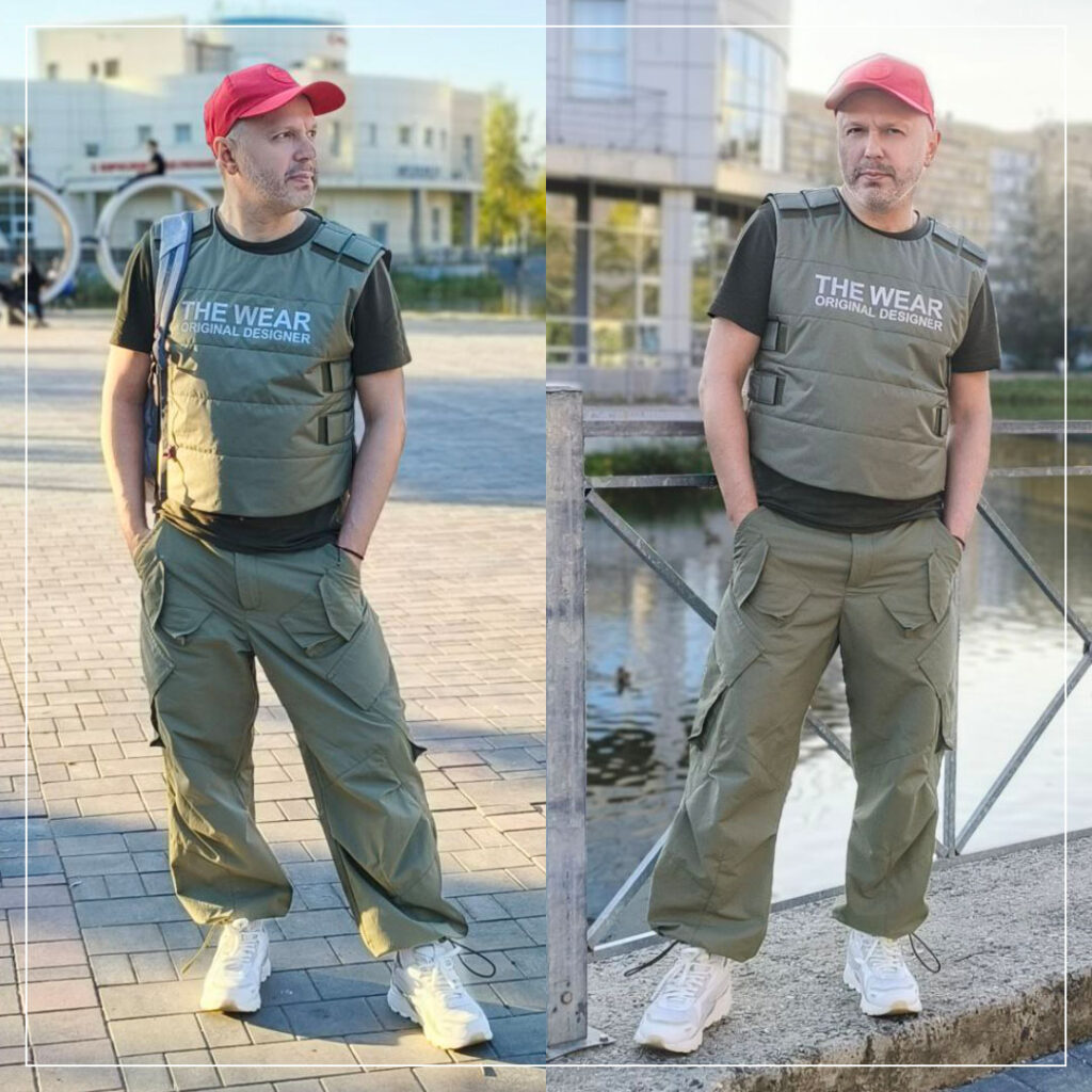Брюки карго по мотивам Акроним(шил в прошлом году похожие для клиента) и жилет по мотивам Хелмута Ланга(1997г)